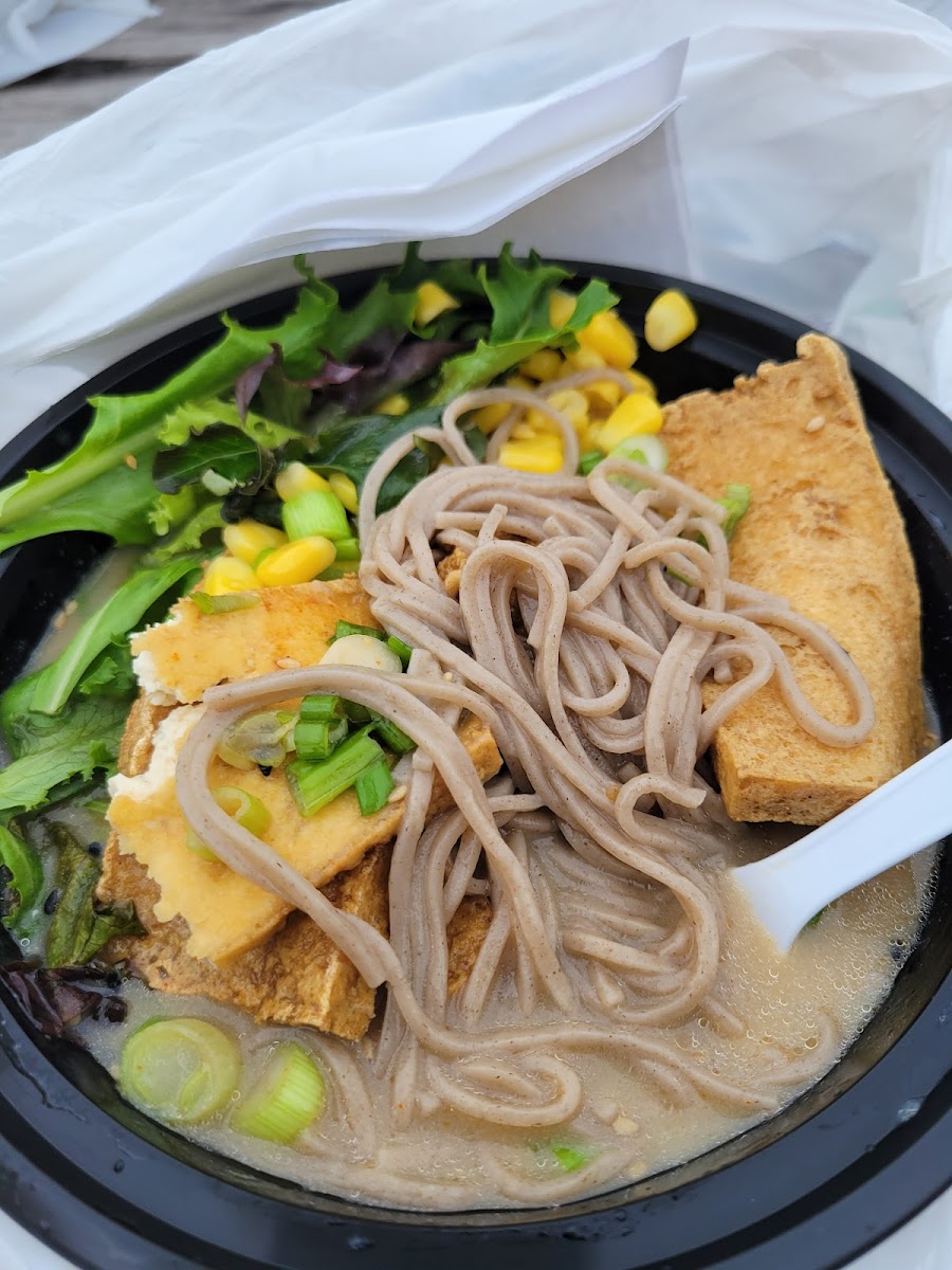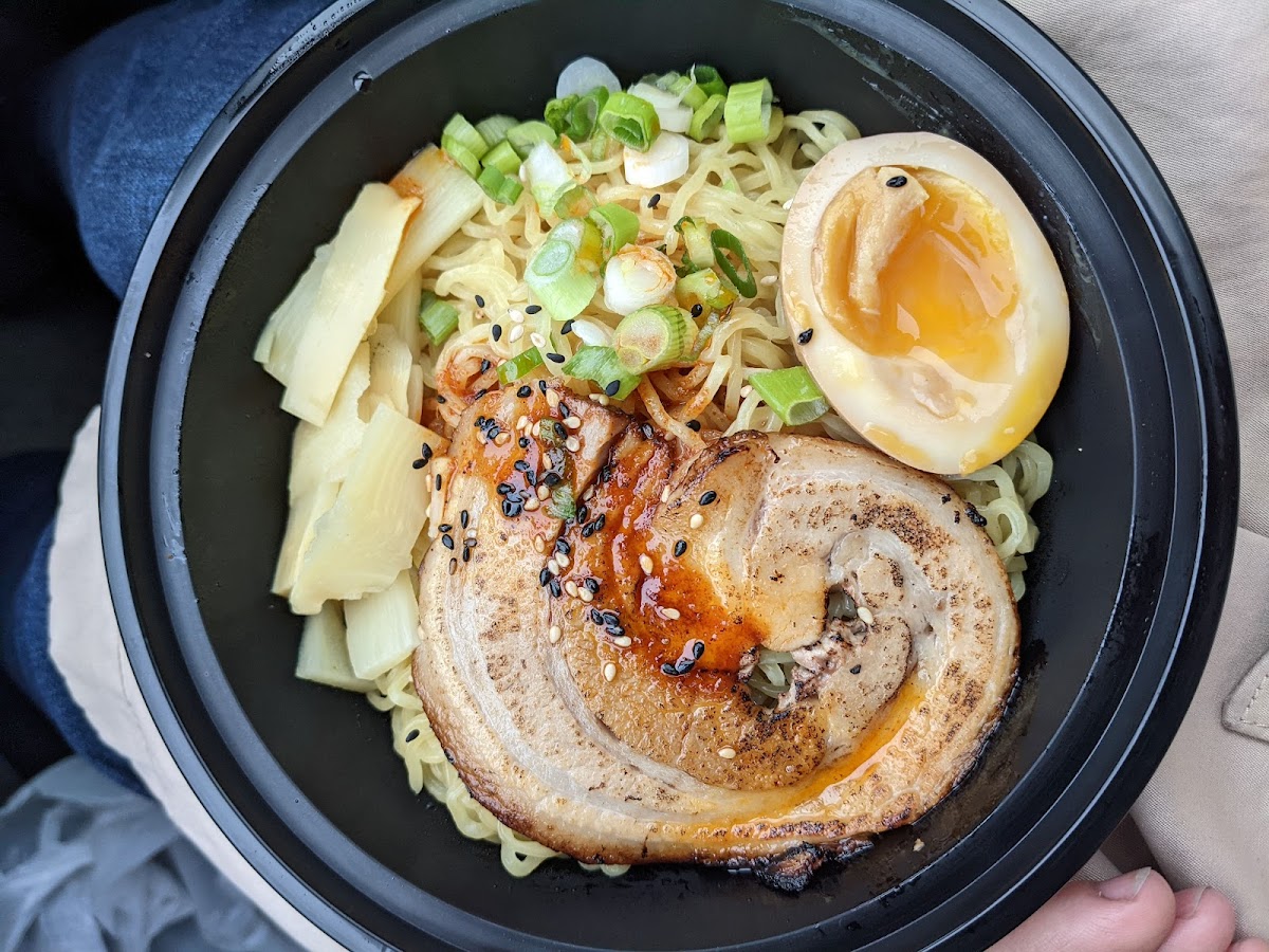 The menu focuses on Japanese-inspired comfort dishes, and two items stand out immediately. The Black Garlic Tonkotsu Ramen is easily one of the highlights of the kitchen. The broth is rich and deeply savory, with the black garlic adding a smoky depth that gives the ramen its signature character. Each bowl feels carefully prepared, with noodles that hold their texture and a broth that delivers bold flavor from the first spoonful to the last.
